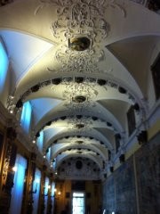 $$$, beige sofa, ceiling medallion, dark wood floor, flowers, gold chandelier, light blue wall, tufted coffee table, tufted ottoman, tufted sofa, turquoise curtain, union jack, union jack armchair, union jack pillow, Без камина, Без телевизора, Гостиная, Декор в бирюзовых тонах, Зелёный, Изолированное помещение, Коричневый, Москва, Смелые цвета, Средний, Тёмная паркетная доска, Эклектика, Яркие шторы, бежевый диван, бежевый журнальный столик, белый радиатор, британский флаг, деревянный пол, картины на стене, ковер, раздвижные белые двери, синие шторы, широкий молдинг