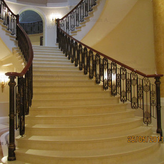 Пример оригинального дизайна: большая лестница в стиле неоклассика (современная классика)