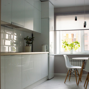 Серая кухня с деревянной столешницей