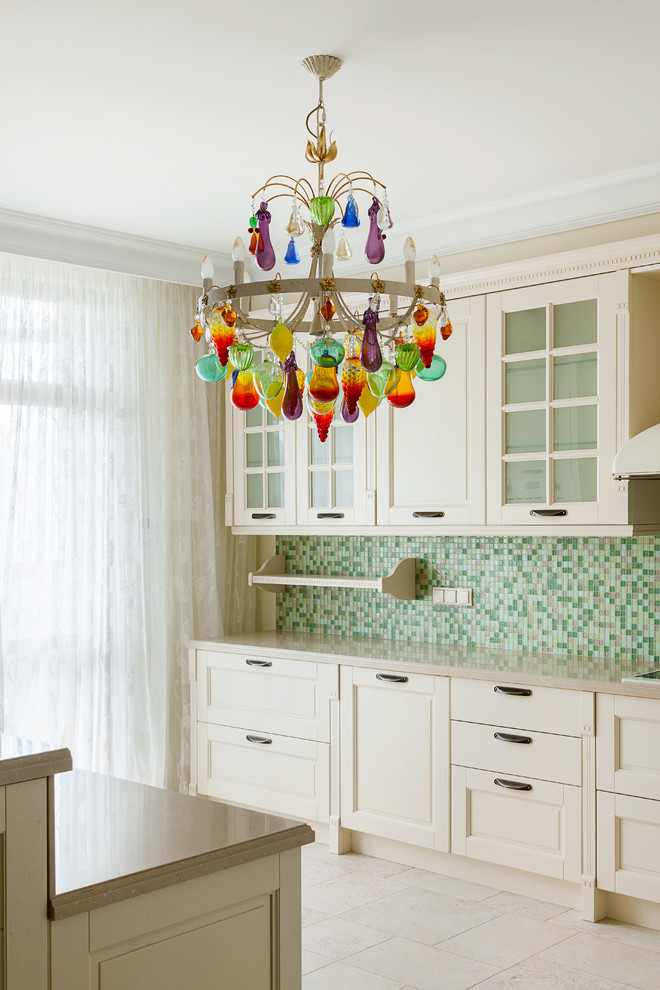 1, Белый, Зелёный, Контемпорари, Кухня, Мозаика, зеленый кухонный фартук, цветная люстра