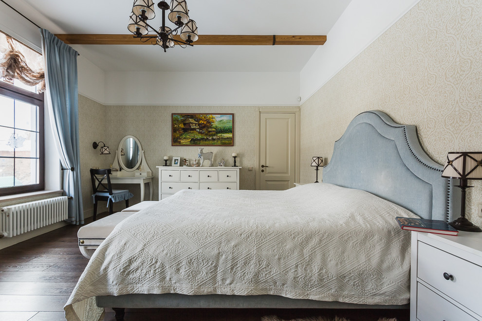 $$, Бежевый, Коричневый, Ламинат, Ленточный камин, Мастер, Москва, Обои, Плитка, Потолок с открытыми балками, Спальня, Средний, Традиционный, американский, балки, балки в интерьере, балки на потолке, бежевый, бежевый с голубым, голубой, голубой текстиль.голубой в интерьере, дизайн спальни, дом загородный, загородный дом, интерьер, интерьер спальни, как обустроить спальню, классика, красивая спальня, кровать, кровать в классический интерьер, мебель икеа в интерьере, окно в спальне, туалетный столик, щторы