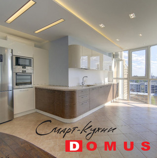 Современная кухня. Орех и белый глянец. Modern walnut kitchen