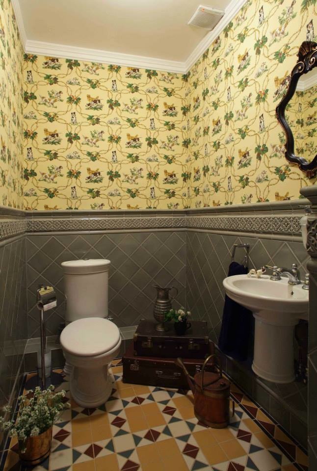 Москва, Традиционный, Туалет, бежевый, ванная, винтаж, декор ванной, зеленый, кремовый, обои, оливковый, плитка, ретро