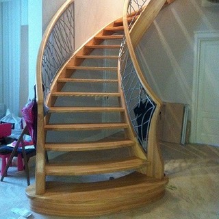 Идея дизайна: винтовая лестница в современном стиле с деревянными ступенями без подступенок
