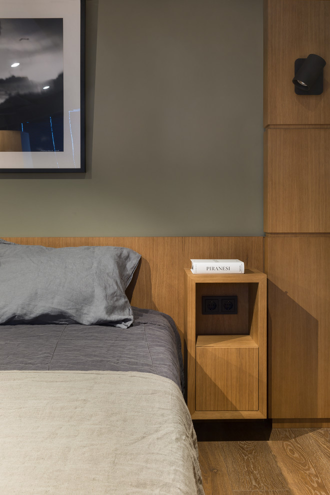 $$, KRAUZE, KRAUZEarchitects, Moscow, Rassvet, Walls, apartment, black, floor, loft, mansarda, minimal, oak, olive, stone, Зелёный, Компактный, Контемпорари, Коричневый, Москва, Спальня, Средняя паркетная доска