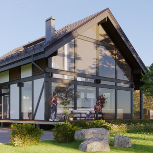 Современный скандинавский стиль – таково было желание заказчика. Для реализации этого проекта мы использовали главные принципы данного стиля: функциональность, лаконичность, конструктивность и натуральность. В результате соединения этих свойств дом получил классическую прямоугольную форму и простую двускатную крышу, в рамках лаконичности. Функциональность фасада обеспечена большими окнами, которые впускают в помещения много света. Также важную роль играют элементы крыши: водосток, трапы и лестница, снегоудержатели которые тоже задают образ фасада. . . Экологичность проявлена в отделки фасада доской из натурального дерева. Ее естественный цвет делает дом частью живой природы и отлично вписывает его в окружающее пространство. Большие свесы кровли и деревянная терраса добавляют ощущение домашнего уюта и делают фасад дома мирным, безопасным местом.