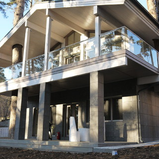 Деревянный дом из клееного бруса для круглогодичного проживания площадью от 230 м2 до 380 м2 в зависимости от потребностей заказчика. . представленный проект реализован в площади 282 м2