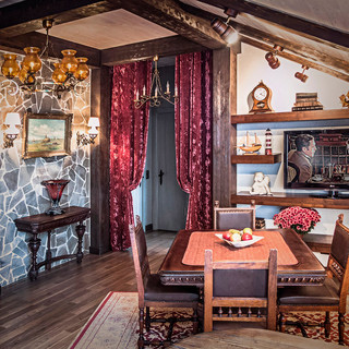 Пример оригинального дизайна: столовая в стиле фьюжн